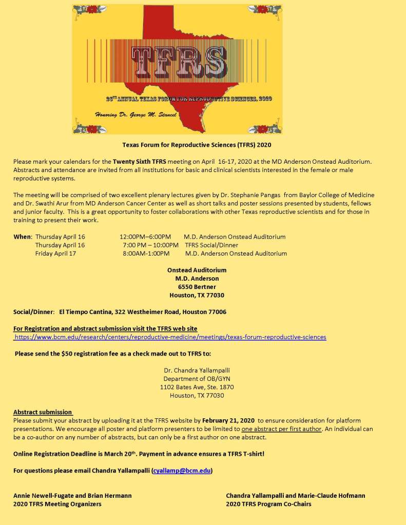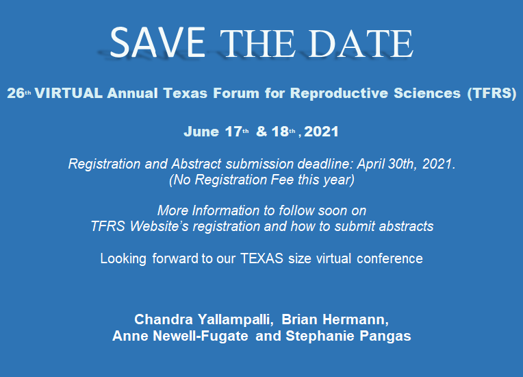 The 26th Annual Texas Forum for Reproductive Sciences will be held in the Texas Medical Center on April 16-17.