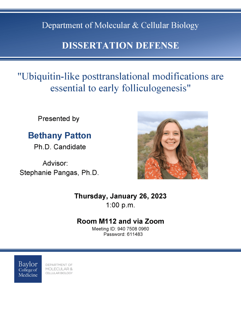 The Annual Meeting of the Society for the Study of Reproduction is on! This years meeting in St Louis, Missouri has both virtual and in-person presentations. The BCM Repro T32 trainees are presenting:
